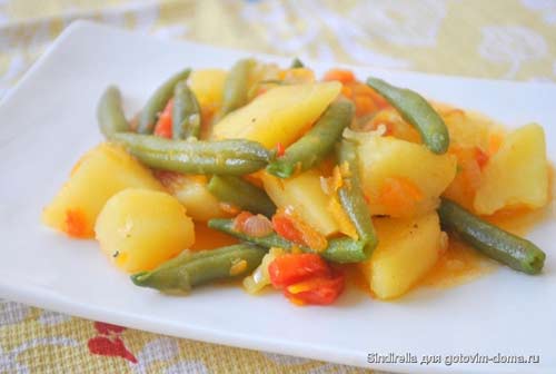 Стручковая фасоль, тушеная с картофелем в томатном соусе
