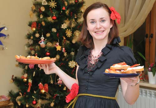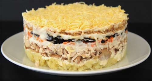 Это, конечно, главное на новогоднем столе (кроме напитков), потому что вся остальная вкуснятина обычно остается на столе… Салатов – множество, и чем больше их изобилие, тем лучше. Есть совсем простенькие, но очень вкусные, есть сложнейшие – и по продуктам, и по готовке. Есть просто морковка по-корейски, есть из моркови, сыра и чеснока, есть с колбасой и огурцом, есть с плавленым сыром и крабами, с грецкими орехами и свёклой, сухариками и чипсами, есть «Павлиний хвост», но есть и «Собачья морда», есть «Ревнивец», но есть и «Ленивая жена» и т.д. и т.п. – на любой вкус.