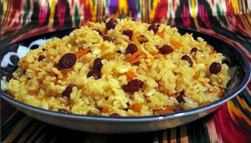 Отварите в подсоленной воде рис, смешайте с нарезанными соломкой и поджаренными морковью, луком и изюмом. Практически ваш плов по-бухарски готов, осталось лишь, подавая, посыпать его зеленью петрушки.