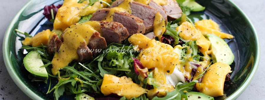 Рецепт теплого салата с уткой и рукколой очень прост. При этом вкус получается изысканным. Учитывая, что утка появляется на наших столах не так уж часто, особенно в сочетании с соусом из манго – он гарантированно вызовет удивление и восхищение у ваших друзей и родственников.