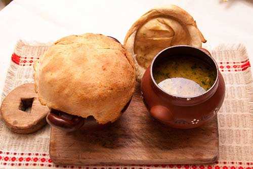 Нарежьте сырой картофель на тонкие пластинки, а лук – тонкими полукольцами, посолите. Филе рыбы нарежьте средними кусочками, немного посолите и поперчите. В смазанные горшочки уложите слоями картошку, лук, рыбу, а потом снова слой лука. Сверху положите кусочек сливочного масла. Из лепешки дрожжевого теста сделайте «крышечки» для горшочков и смажьте их сметаной или майонезом. Выпекайте в разогретой до 200 градусов духовке 40-50 минут, тесто должно хорошо подрумяниться.