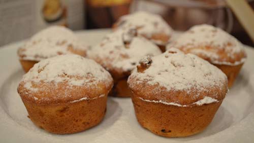 Взбейте размягченное масло, сахар, ванильный сахар с яйцами, влейте кефир. Разомните бананы вилкой, вмешайте в смесь. Смешайте муку и разрыхлитель, замесите тесто и добавьте изюм. Выложите тесто в формочки, смазанные сливочным маслом и притрушенные мукой. Выпекайте в заранее разогретой духовке до 180 градусов около 30 минут. Посыпьте сахарной пудрой.