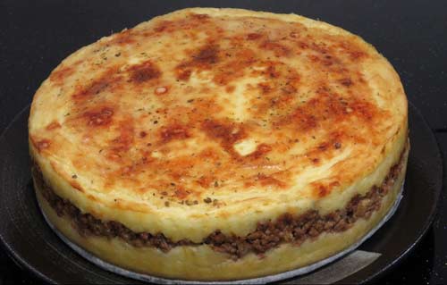 Порубите мясо на мелкие кусочки. Очистите и нарежьте лук. Картошку отварите в подсоленной воде (будет вкуснее, если варить ее в мундире). Смешайте мясо и лук, посолите, поперчите. Обжарьте фарш на сковороде. Если фарш получился слишком сухим, добавьте немного воды. В отваренный картофель добавьте сливочное масло и разомните в пюре. Разъемную форму для выпекания застелите бумагой для выпечки. Смажьте форму растительным маслом. На дно формы выложите половину приготовленного картофеля, равномерно распределите его по всей форме. Далее выложите обжаренный фарш, а сверху – вторую половину картофеля. Выровняйте верх запеканки, проткните его в нескольких местах ножом и смажьте сметаной. Нагрейте духовку до 180 градусов и выпекайте картофельную запеканку до румяной корочки. Отдельным слоем можно добавить грибов, получается еще вкуснее. А в дни поста лучше всё мясо заменить грибами.