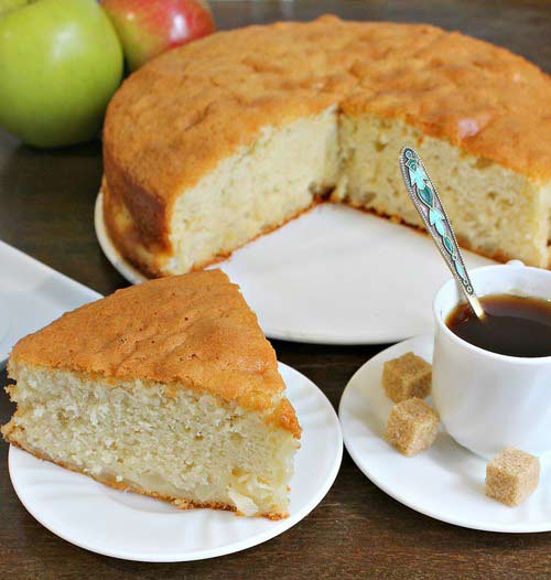 700 г яблок, 4 яйца, 180 г сахара, 2 ст. муки, 180 мл шампанского или вина, 1/2 ст. растительного масла, 2 ч. л. разрыхлителя теста, ванильный сахар – по вкусу.