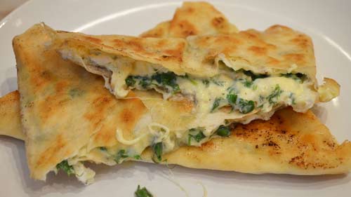 Смажьте сковородку маслом и выложите лаваш, чтобы свисали края с бортика сковородки примерно одинаково. Насыпьте в центр лаваша тертый сыр, смешанный с мелко нарезанной зеленью, сверху вылейте сырое яйцо. Сложите края лаваша и обжарьте до золотистого цвета с двух сторон. Переверните лаваш, присыпьте сыром и зеленью, накройте крышкой, сделайте огонь на минимум и подождите пока сыр расплавится.