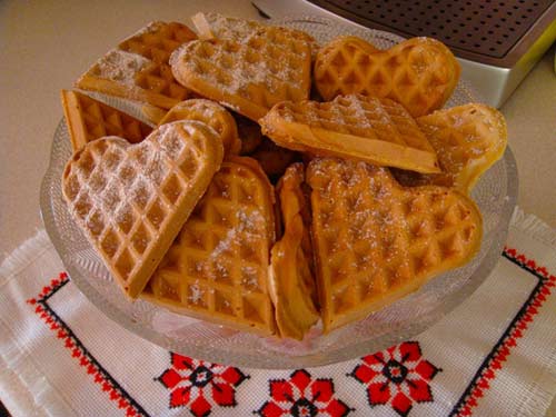 Отделите белки от желтков. Желтки взбейте с кефиром и растительным маслом до однородности. В глубокую миску просейте муку с солью. Влейте жидкие ингредиенты в сухие. Взбейте белки с сахаром. Понемногу добавляйте белки в тесто, аккуратно перемешивая. Останется только разогреть вафельницу и прожарить вафли до румяности.