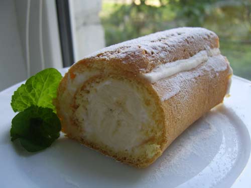 Смешайте творог, яйцо и отруби, замесите тесто. Размажьте половину теста по бумаге для выпекания, сверху положите банан на край и скрутите рулет. Запекайте в духовке при 180°C в течение 30 минут.