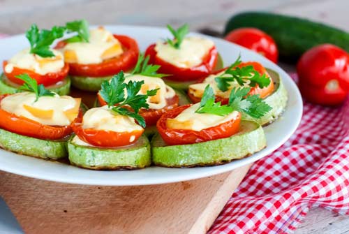 2 кабачка, 2-3 помидора, 150 г сыра, 4-5 зубчиков чеснока, 70 г майонеза, зелень – по вкусу.