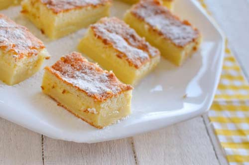Белки отделите от желтков, взбейте с щепоткой соли до устойчивых пиков. Желтки взбейте с сахаром, ванилином и водой. Масло растопите, слегка остудите, влейте в желтки и взбейте. Всыпьте в три приема муку, каждый раз тщательно взбивая. Вылейте половину молока, тщательно взбейте, затем – оставшееся молоко и снова взбейте. Подмешайте белки, движением сверху вниз. Тесто получится даже жиже, чем на блины. Неразъемную форму смажьте маслом, посыпьте мукой и залейте тестом. Поставьте в духовку при 175°С примерно на 1 час (зависит от духовки). Ориентируйтесь на внешний вид: сверху должно хорошо подрумяниться, а содержимое совсем слегка колыхаться. Полностью остудите, посыпьте сахарной пудрой и нарежьте на порции. Название обусловлено тем, что при смешивании всех ингредиентов, жидкое тесто в духовке «умным» образом расслаивается на слои и посередине получается прослойка крема.
