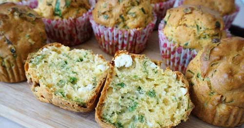 Сыр натрите на мелкой терке, смешайте с яйцом, влейте кефир, всыпьте нашинкованный зеленый лук и перемешивайте. Добавьте просеянную муку с разрыхлителем. Даем тесту постоять около получаса. Разложите массу по формочкам и выпекайте при 200°C еще полчаса до образования румяной корочки сверху.