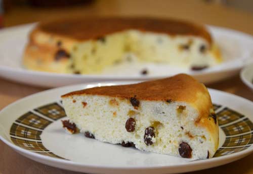 400 г творога, 2 яйца, 3 ст. л. манной крупы, 1/2 ч. л. разрыхлителя, сахар или подсластитель, ванилин, ягоды – по вкусу.