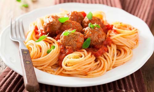 Для фрикаделек: 300 г перекрученного с луком мясного фарша, 2 зубчика чеснока, свежая зелень, соль, перец – по вкусу. Для соуса: 500 г томатов с собственном соку, 1 луковица, 1 сладкий перец, 1 ч. л. сладкой молотой паприки, 1/2 ч. л. хмели-сунели, 1/2 ч. л. молотого имбиря, 1 ч. л. сахара, красный молотый перец, соль – по вкусу.