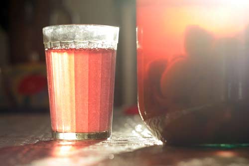 500 г брусники, 3 л воды, 5 ст. л. мёда или 300 г сахара, несколько веточек мяты.