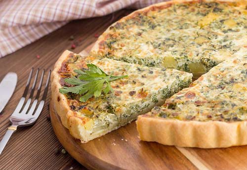 1 кабачок, 1 сладкий перец, 2 помидора, 5-6 шампиньонов, 1 луковица, 200 мл сливок, 150 г сыра фета или сулугуни, 2 яйца, 100 мл кефира, 2 ст. л. воды, 120 г масла, 180 г муки, соль – по вкусу.