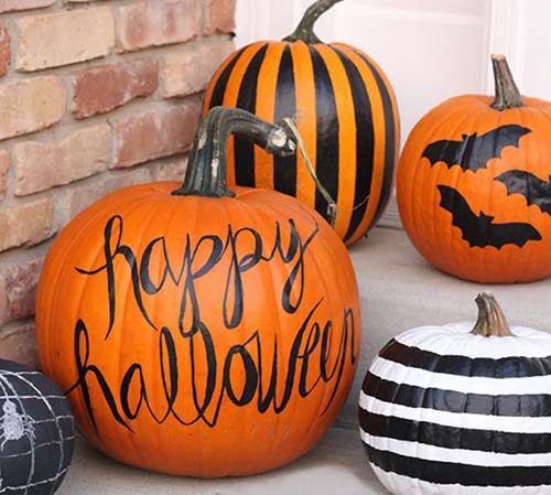 Вовсе необязательно для праздника портить тыкву, вырезая в ней глаза и рот. Ее можно просто разрисовать!