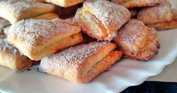 Творожные слойки с творогом 3 ст. муки, 500 г творога, 1 ч. л. пищевой соды, 2 яйца, 1 щепотка соли, 1 ст. л. растительного масла, сахар – по вкусу. Творог разотрите вилкой с яйцами. Добавьте остальные ингредиенты, кроме сахара и масла, и хорошо вымесите до однородной массы, чтобы не было видно творога. Затем сделайте колбаску и разрежьте ее на кусочки. Насыпьте сахар в тарелку. Обмакните каждый кусочек в сахар, прижав, и заверните сахаром внутрь – и так три раза, пока не получится треугольник. Уложите треугольники на смазанный маслом противень сахаром вверх. Выпекайте слойки в очень горячей духовке пока не зарумянятся. |