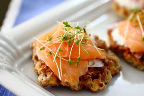 Оладьи из гречки с малосольной семгой