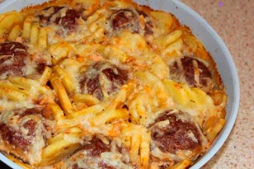 Запеканка из тефтелей с картошкой