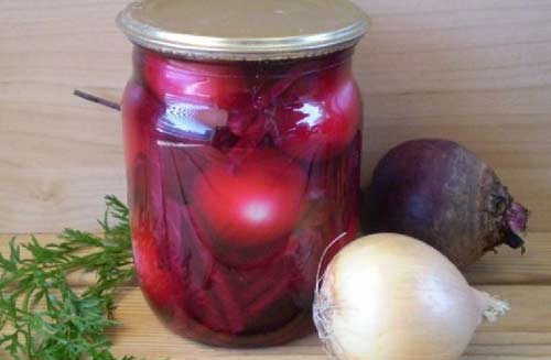Маринованный лук со свёклой