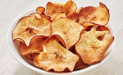 Нарежьте яблоки тонкими кружочками и смешайте с сахаром и корицей. Выложите яблоки на решетку духовки и готовьте 2-3 часа при температуре 90°C, перевернув их в середине приготовления. Яблоки должны подсушиться, но остаться немного мягкими.