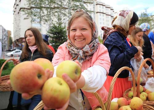 Нарежьте очищенный картофель и курицу одинаковыми кубиками. Отварите их на пару до готовности, примерно 20 минут. Затем остудите. Очистите яблоки и нарежьте их такими же кубиками. Смешайте с остальными ингредиентами, приправьте солью, полейте маслом и украсьте листьями базилика.