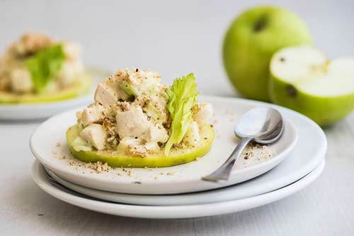 1 средняя картофелина, 1 куриная грудка, 1 яблоко, немного оливкового масла, несколько листьев базилика, соль – по вкусу.