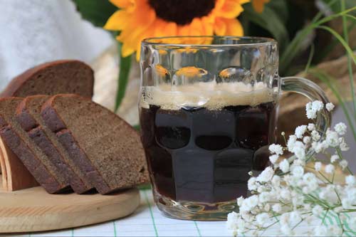 1 кг сухарей, 1,5 кг сахара, 40 г дрожжей, 3 л воды, мята – по вкусу.