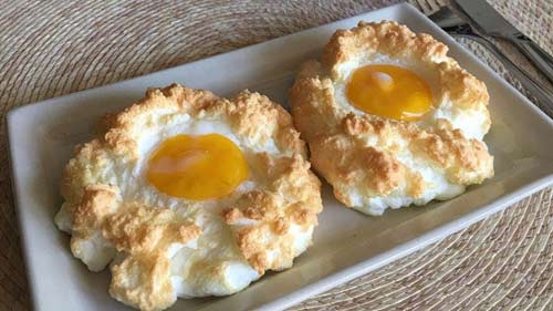 Смажьте сковороду сливочным маслом. Отделите белки от желтков. Белки взбейте до состояния пиков вместе со щепоткой соли. Вылейте белки в сковороду, в центр поместите желток и посолите. Поставьте в духовку. Запекайте 10 минут (или дольше – по желанию) при 190°C.