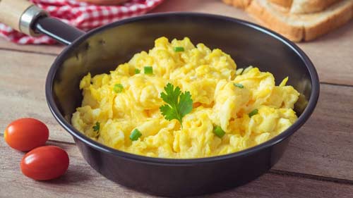 6 яиц, 3 ч. л. сливок (10%), 30 г оливкового масла, соль, лимонный сок – по вкусу.