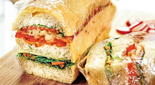 Бутерброды удобно перевозить в специальной вакуумной или термоупаковке, а на худой конец в фольге или пищевой пленке. Если нет возможности приобрести сумку-холодильник, ее можно сделать самому. Для этого понадобится переносная сумка, фольга и бутылка со льдом. Поместите на дно сумки лист фольги, затем полотенце, потом бутылку со льдом и снова слой фольги. Хранить еду можно в такой сумке до 6 часов в жаркую погоду.