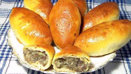 Для теста: 2 ст. сметаны (кефира, ряженки, простокваши), 2 яйца, мука – сколько возьмет тесто, 1 ч. л. без верха соды, гашеной в 1 ст. л. уксуса, 1 ст. л. сахара, соль – по вкусу. Для начинки: фарш (любое мясо), 1 луковица, 4 крупных картофелины.