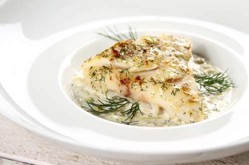 650-900 г филе белой рыбы (палтус, треска, окунь, морской окунь и т.д.), 3 ст. л. сливочного или оливкового масла, 3 ст. л. белого сухого вина или сухого хереса, 1 пучок укропа или петрушки, соль, черный молотый перец – по вкусу.
