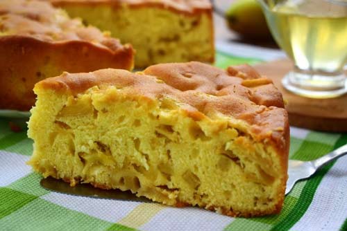 240 г муки, 400 г груши, 3 яйца, 160 г сахара, 100 г сливочного масла, 1 ч. л. разрыхлителя, 3 ст. л. жидкого мёда.