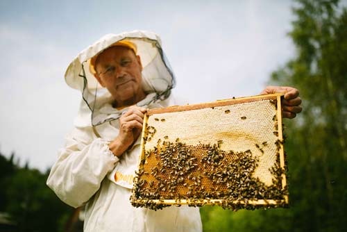 6 яиц, 160 г сахара, 2 ст. л. мёда, 190 г муки, сгущенное молоко, орехи – по вкусу.