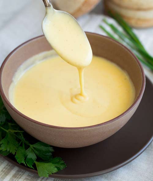 Растопите масло в кастрюле на среднем огне. Добавьте муку и взбейте до однородности, не снимая с огня. Тонкой струйкой влейте молоко и продолжайте взбивать и прогревать, пока смесь не приобретет консистенцию кетчупа. Добавьте сыр (тертый или ломтиками), прогревайте и взбивайте, пока сыр полностью не расплавится. Как только сыр расплавится, снимите с огня. Традиционно этот соус подают к макаронам, однако при желании его можно есть и просто так, и подавать к блюдам из мяса, птицы, к самым разнообразным закускам, чипсам.