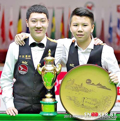 Недавно в китайском Уси завершился любопытный турнир по одной из разновидностей бильярда. В нем приняли участие 24 команды, в состав которых входило по два лучших по рейтингу снукериста из 23 государств нашей планеты, поскольку страна-хозяйка имела возможность выставить две сборные. И в главную из них вошли победители предыдущего аналогичного турнира четырехлетней давности – Дин Джиньху (четвертый номер мирового рейтинга) и Сяо Годун, занимающий на начало сезона 2015/2016 годов 21-е место.