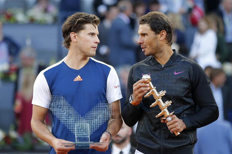 Первый сет Надаль отдал с результатом 0:6, такого разгромного счета у него не было уже 1,5 года. Не лучшим образом проявил он себя и на брек-пойнтах, использовал только 5 из 17. Правда, в конце второго сета на брейк-пойнте он взял вверх над австрийцем с результатом 6:4. В третьем сете 1-ая ракетка мира отдал одну подачу свою, но при этом взял две подачи соперника, счет 7:5. Четвертый и пятый сеты разыгрывались на тай-брейке. Четвертый сет выиграл Доминик Тим, а пятый сет заставил обоих игроков понервничать. Они шли вровень до счета 5:5, пока Надаль не заработал матч-бол. В итоге он закончил игру победой, послав свечу австрийцу, в ответ на которую, тот отправил мяч в аут.