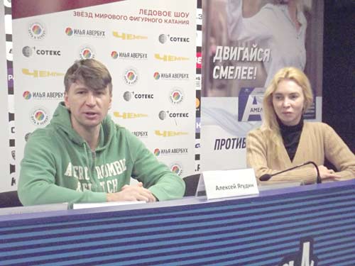 Перед представлением прошла пресс-конференция с участием Олимпийских чемпионов Алексея Ягудина и Татьяны Тотьмяниной. «Шоу Ильи Авербуха уже 16 лет, – рассказал на пресс-конференции Алексей Ягудин. – Много лет мы ездим на гастроли по разным городам России, гастрольный график очень плотный. Мы все благодарим нашего генерального спонсора фармацевтическую компанию Сотекс, выпускающую гель «Амелотекс», за многолетнюю поддержку наших фигуристов и команды Ильи Авербуха. Мы, уже одной ногой шагнувшие в пенсионный возраст, рады, что есть возможность до сих пор кататься на коньках. Мне, например, через месяц уже будет 40 лет».