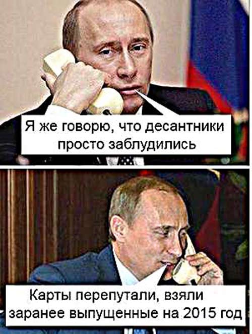 Но самый большой поток лжи мы получаем от Путина по поводу войны в Украине. Сначала он утверждал, что власть в Украине захватили фашисты. Но через два месяца после законных выборов выяснилось, что проголосовало за националистов всего 1,6% населения. Потом вранье про крымских вежливых зеленых человечков, которые «купили» в военторге автоматы. Потом о «заблудившихся» в Украине десантниках. Путину говорят, что в Украине воюют российские солдаты. А он: «Солдаты, солдаты, какие солдаты? Где доказательства?»