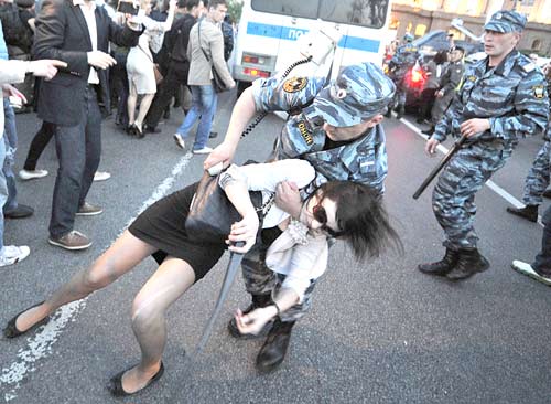 Особенно страшно, когда избивают женщин и детей. Так поступать могли только фашисты. Поэтому я считаю, что те, кто одет в милицейскую-омоновскую форму и избивает народ – это для меня фашисты. Люди в форме, которые занимаются избиением ни в чем не повинных людей, говоря: «Это моя работа!» Где, в каких правилах указано избивать людей, особенно детей и женщин? Для меня это не люди, а нелюди.