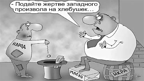 Наша страна щедро разбазаривает народное достояние бесконечными олимпиадами, спартакиадами, саммитами, утопическими прожектами и прочими развлечениями, а народ живет впроголодь. Такие вот рыночные отношения создали реформаторы для себя и своих интересов. Заботы о промышленности и производстве в стране, о достойных зарплатах остались у них на заднем плане, уступив место стремлению набить карманы, стать миллионерами, по числу которых Россия уже оставила позади самые богатые мировые державы.