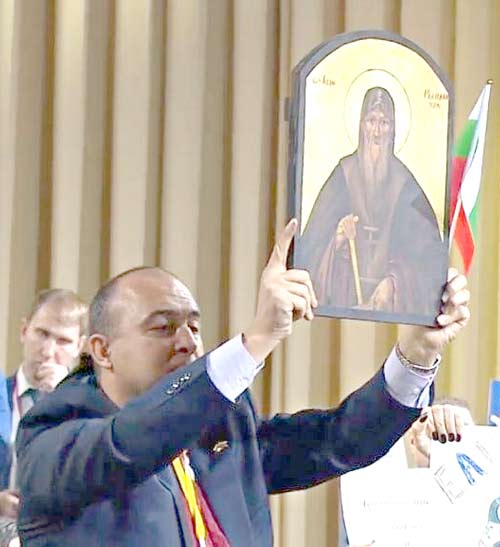 Также Путину зачем-то показали икону. Этому человеку слова не дали – он кричал без микрофона, и его не услышали.