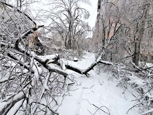 Незабвенное 18 ноября прошлого года, так называемый, ледяной дождь – памятно всем. 34 тысячи сломанных деревьев насчитали в одном Владивостоке! Не так давно губернатор провёл субботник по уборке города. А мы на БАМе и по сей день живём как на поле боя – страшные белые кости погибших, изуродованных деревьев пятый месяц безмолвно стонут, вонзившись в небо и пугая наших детей. Конкретно – дом 18 на улице Днепропетровской, с тыльной стороны которого лет двадцать назад мы высадили 36 деревьев, половина которых пострадала.