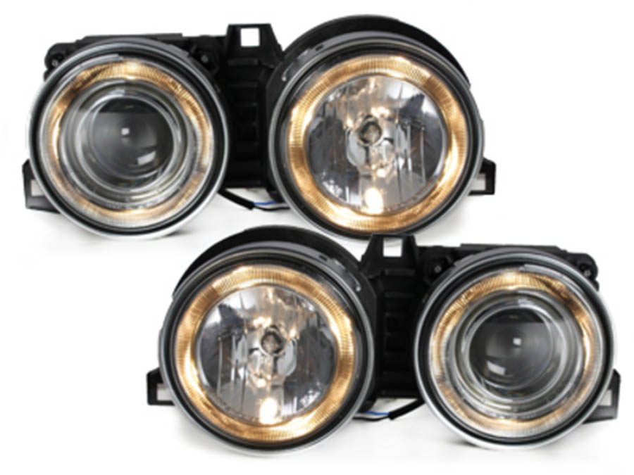 - Линзованные фары «ангельские глазки». Одно из самых удачных решений для тюнинга оптики, которое пользуется неослабевающей популярностью у автовладельцев. Светящиеся линзы, заключенные в фары, делают «взгляд» вашей машины более эффектным и глубоким.