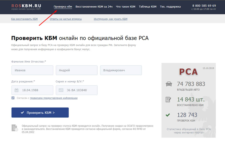 Данный ресурс позволяет бесплатно осуществить проверку коэффициента бонус-малус водителя официально. Здесь вы сможете отправить запрос в базу РСА для того, чтобы восстановить КБМ. Поскольку часто водители переплачивают за страховку из-за неправильно рассчитанного КБМ, после проверки на портале возможно получить скидку до 50% на оформление ОСАГО. Услуги проверки, а также восстановления на сайте осуществляются быстро и недорого.