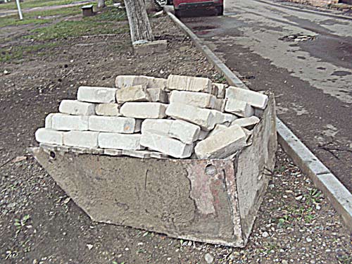 Кирпич на машине № 152 ЕМ 125 доставили к дому № 6 ул. Героев Даманского, и вскоре на кране подняли на крышу дома, где и ведутся работы так называемого капитального ремонта, а судя по внешнему виду кирпича, более похоже, «отмыва» программных миллионов рублей! Причем, это была не первая ходка машин с такими осколками кирпича.