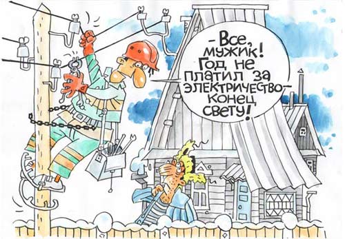 По спору вышеназванных граждан. За свет надо платить, как за булку хлеба или иное благо. Ведь вы же не приходите в магазин, не говорите: «У вас нет кассы, поэтому хлеб я возьму бесплатно». А с коммунальными услугами граждане считают, что так поступать можно.