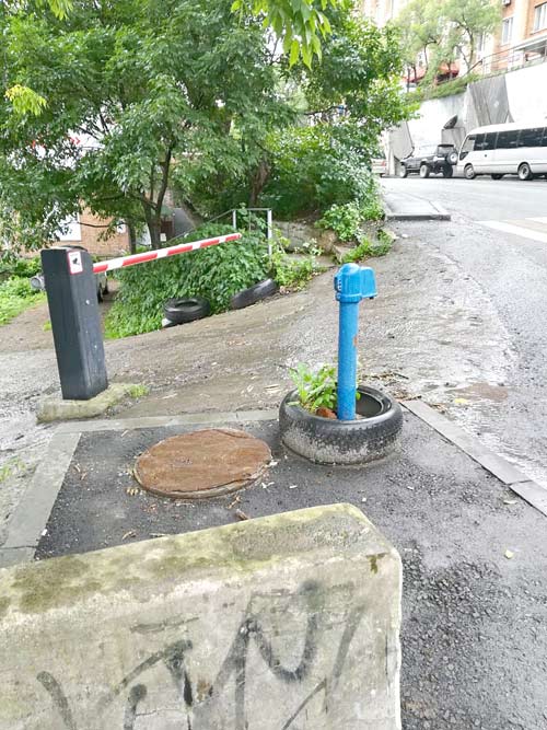 Раньше, до саммита, и конечно же моста, возле 9-го дома почти полвека была колонка, но ее принесли в жертву Золотому мосту. С тех пор люди страдают без воды, выкручиваются, кто как может. Кинулись было туда, где были поблизости подобные колонки. Одна возле лестницы, ведущей к фуникулеру, ул. Ключевая, 5. Была и на ул. Пушкинской, напротив 6-го дома. Но им обеим свернули ручки. Теперь ближайшая – на ул. Пушкинской, 13.