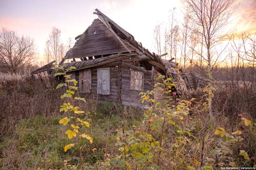 Видеоблогер Илья Варламов объездил большую часть России и сделал фоторепортаж под заголовком «Мертвая Россия». Мы помещаем здесь лишь один снимок из великого множества, привезенных им из мертвых деревень, где ещё 20 лет назад кипела жизнь.