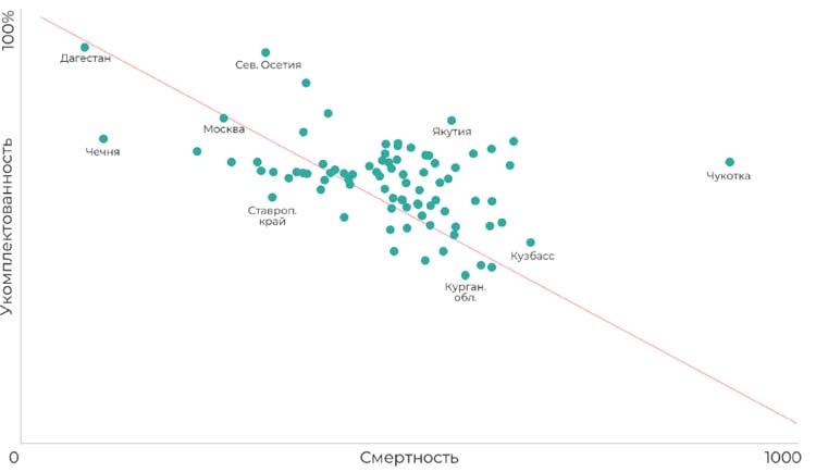 Высокая нагрузка на врачей и высокая смертность населения часто встречаются в одних и тех же регионах